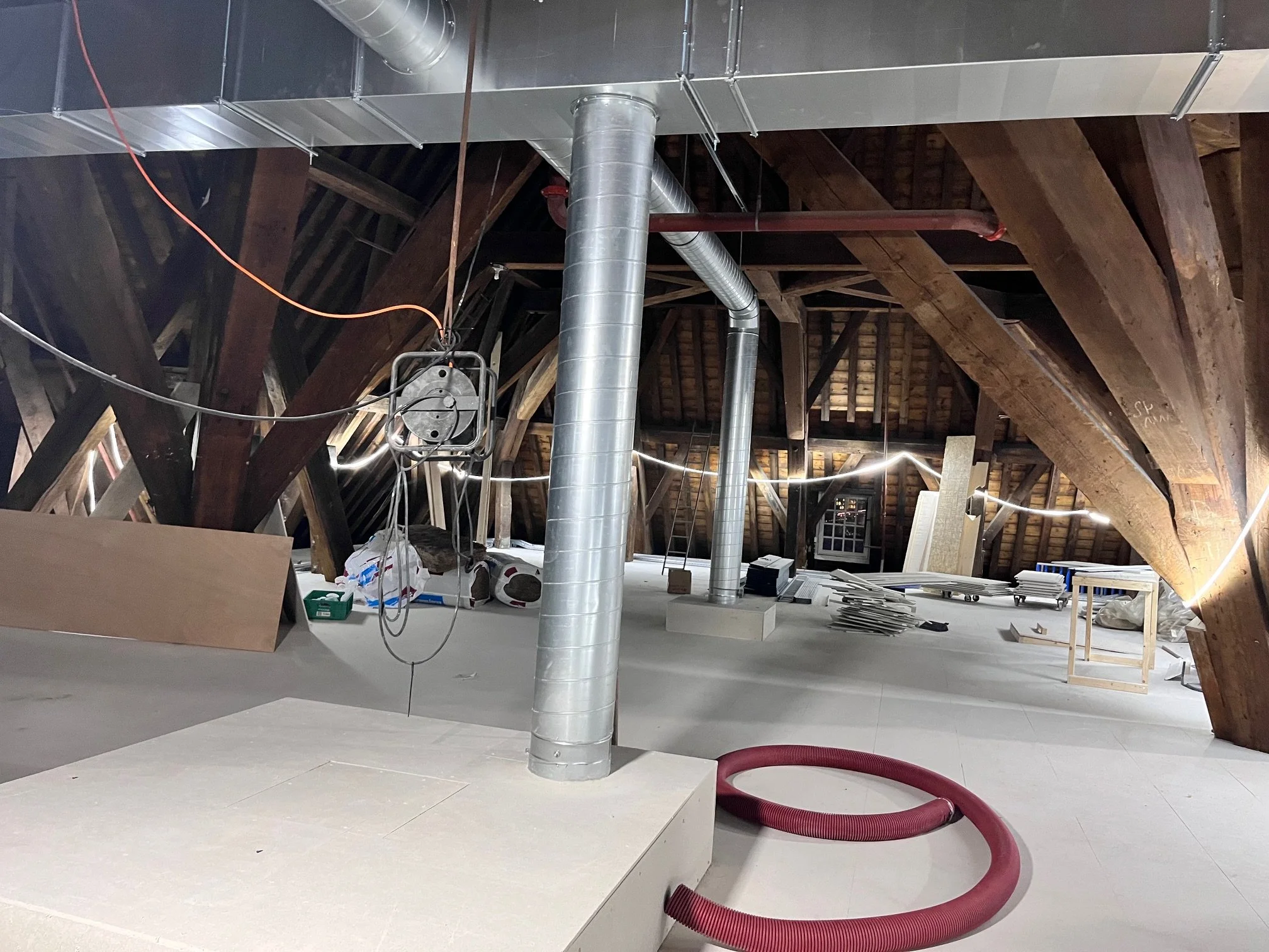 Stadsherstel heeft vorig jaar grote stappen gezet met de verduurzaming van de Oosterkerk. De zoldervloer is geïsoleerd en aan de binnenkant van de kerk zijn voorzetramen geplaatst. Ook is een luchtbehandelingsinstallatie aangebracht met twee luchtbehandelingskasten, namelijk één aanzuigdeel achter het orgel en één afzuigdeel op de zolder. Aan de achterkant van de kerk wordt warme lucht door roosters onder de op een verhoging geplaatste kerkbanken de kerk ingeblazen. De lucht wordt afgezogen door het plafond, midden in het gewelf, via de klok en de sterren. De klok is om die reden ongeveer 20cm lager opgehangen en er zijn gaten gemaakt in de stervlakken. Op zolder, boven de klok en de sterren, wordt de lucht verder afgevoerd door afzuigkanalen die zo zijn opgehangen dat er ruimte genoeg is om onderdoor te lopen. Zo blijft de hele zolderruimte goed begaanbaar en blijft de ruimte als geheel behouden.